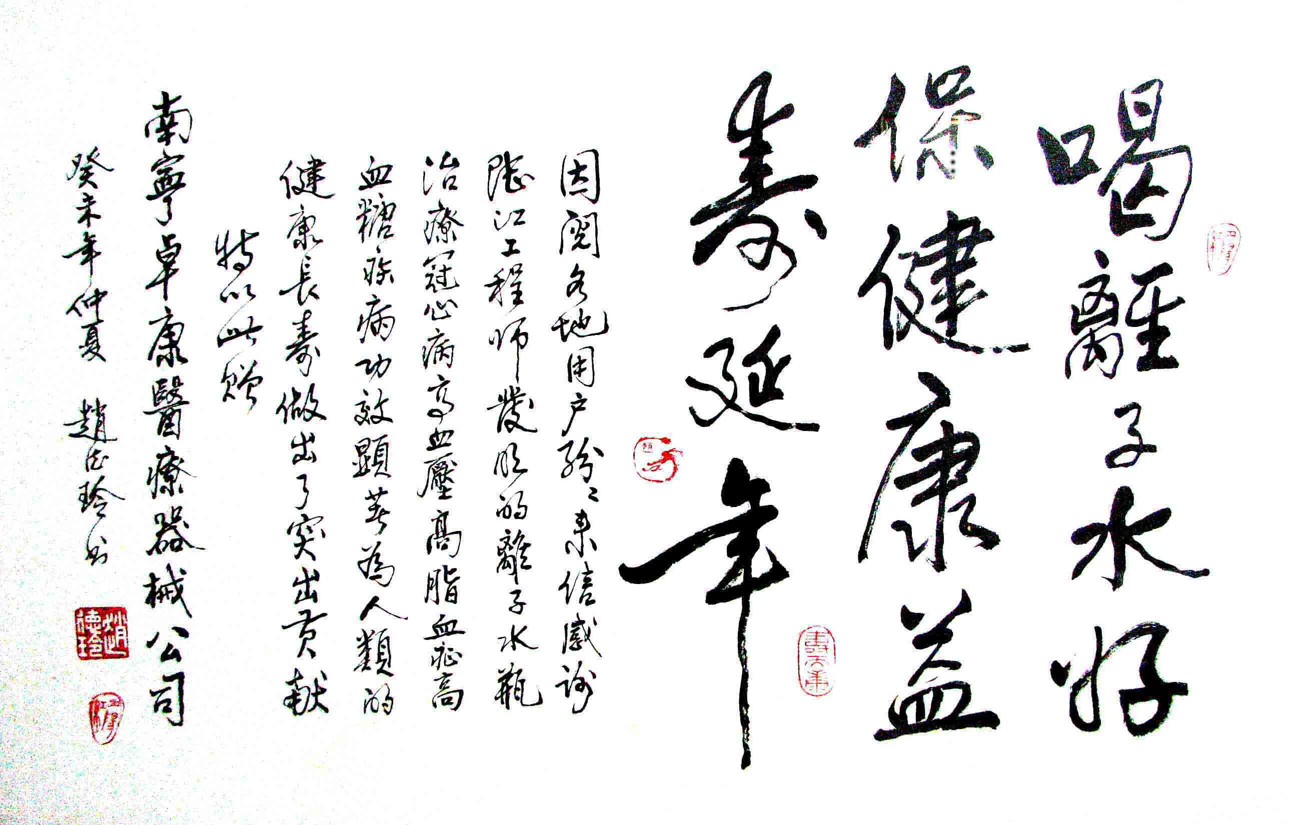 - -- 幾千年來,人類靠醫(yī)藥不能根治冠心病、高血壓和糖尿病,如想根治,那是夢(mèng)想。可是,我從中國基礎(chǔ)醫(yī)學(xué)研究成果受到啟發(fā),研發(fā)了一種發(fā)明產(chǎn)品,處理出微小分子團(tuán)水讓人飲用,實(shí)現(xiàn)了人類這一夢(mèng)想!患者飲用后遠(yuǎn)離了冠心病、高血壓和2型糖尿病。這一成果曾經(jīng)過臨床試用和專家鑒定,作為準(zhǔn)字號(hào)醫(yī)療器械讓廣大患者飲用,療效進(jìn)行跟蹤調(diào)查。很多患者的反饋情況令人感動(dòng),我放在公司網(wǎng)站上(nnzk.com),震撼了醫(yī)學(xué)專家,也使廣大同胞受到啟發(fā)。人們盼望飲用它給細(xì)胞補(bǔ)水,治愈多種病癥,既省錢,又安全,而且延長(zhǎng)壽命。
