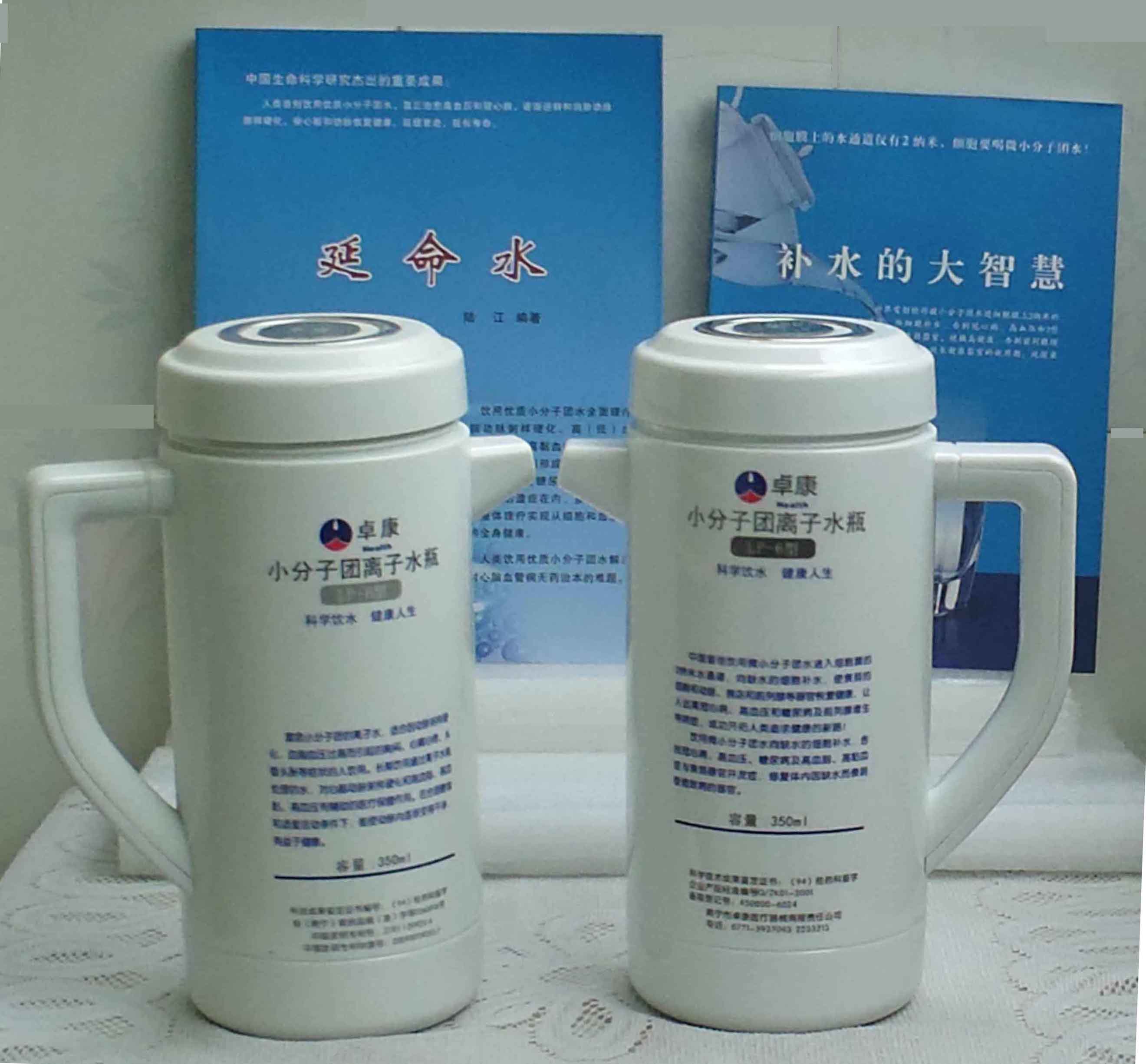 本品大量用戶的使用效果表明,能治愈冠心病、腦動(dòng)脈硬化、原發(fā)性高(低)血壓、高血脂、高粘血癥、高血尿酸癥(痛風(fēng))和2型糖尿病、衰弱器官并發(fā)癥(前列腺增生、腎衰與尿毒癥)及中風(fēng)后遺癥等療效好。產(chǎn)品配信譽(yù)卡。使用壽命30年,不換芯,易清洗。團(tuán)購優(yōu)惠。從郵局匯款,匯費(fèi)1%,地址按本頁下方地址、聯(lián)系人寫。從銀行匯款,請(qǐng)點(diǎn)擊[聯(lián)系匯款]欄,從工商銀行匯款,建設(shè)銀行、農(nóng)業(yè)銀行匯款,均免收匯費(fèi),匯款后20--30分鐘內(nèi)發(fā)短信,可用微信轉(zhuǎn)帳,均免匯費(fèi),微信號(hào)即手機(jī)號(hào)13768308380。匯款后,告知你的姓名和地址,我公司聯(lián)系人手機(jī)號(hào)是:13768308380。卓康牌離子水瓶為我公司獨(dú)家生產(chǎn),郵購產(chǎn)品配《補(bǔ)水的大智慧》彩印書一本,另配四季出版社出版的新書《補(bǔ)水的大智慧》一本,并配光盤一張(含央視主持人釆訪陸江的對(duì)話視頻)。目前市場(chǎng)和"淘寶網(wǎng)"上有人兜售假冒的偽品,望讀者審察辯別真?zhèn)危旒僬哓飧`假冒本公司的各種認(rèn)證、獲獎(jiǎng)獎(jiǎng)項(xiàng)、專利號(hào)和外包裝盒上的中英文字,包括科技成果的鑒定意見等,請(qǐng)讀者注意防偽。如何識(shí)別假貨?已經(jīng)買了假貨怎么辦?(請(qǐng)點(diǎn)擊[打假掠影][打假掠影])。